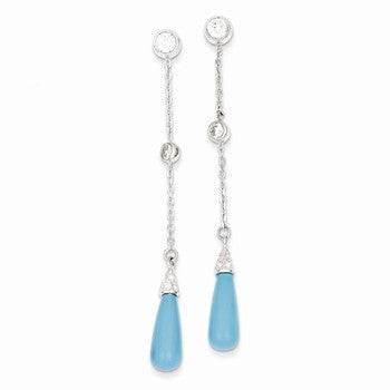 Sterling Silver Turquoise Stone CZ Post Dangle Earrings