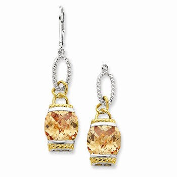 Sterling Silver Vermeil Champagne CZ Dangle Earrings