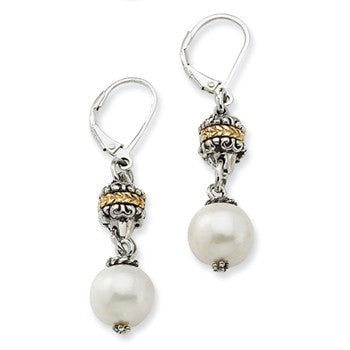 Sterling Silver w/14k Yellow Gold 10-10.5mm Freshwater Cultured Pearl Earrings