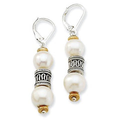 Sterling Silver w/14k Yellow Gold 8/10mm Freshwater Cultured Pearl Barrel Earrings