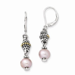 Sterling Silver w/14k Yellow Gold 8-8.5mm Pink FWC Pearl Earrings