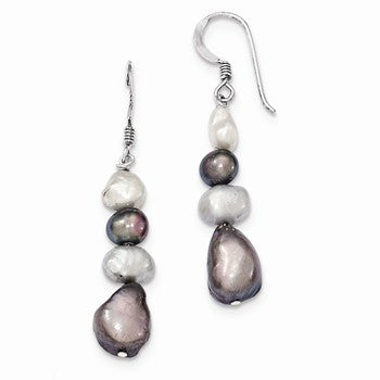 Sterling Silver White Grey Freshwater Cultured Pearl Earrings