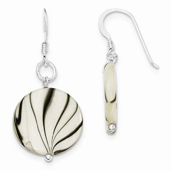 Sterling Silver Zebra Print Mother of Pearl Disc Earrings