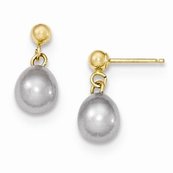 14k Yellow Gold 6-6.5mm Grey Freshwater Cultured Pearl Dangle Earrings