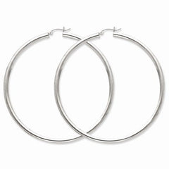 Sterling Silver Rhodium-plated 3mm Round Hoop Earrings
