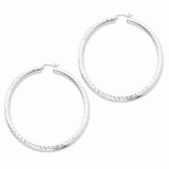 Sterling Silver Rhodium-plated 4.00mm Diamond-cut Hoop Earrings
