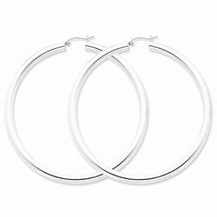 Sterling Silver Rhodium-plated 4mm Round Hoop Earrings