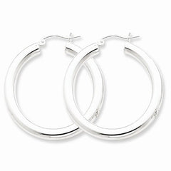 Sterling Silver Rhodium-plated 4mm Round Hoop Earrings