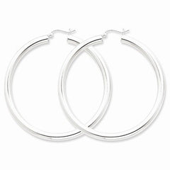 Sterling Silver Rhodium-plated 4mm Round Hoop Earrings