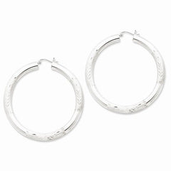 Sterling Silver Rhodium-plated 5.00mm Polished Satin Diamond-cut Hoop Earrings