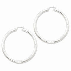 Sterling Silver Rhodium-plated 5mm Polished Diamond-cut Hoop Earrings