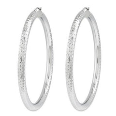 Sterling Silver Rhodium-plated 5mm Polished Diamond-cut Hoop Earrings