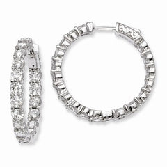 Sterling Silver Rhodium-plated CZ In and Out Hinged Hoop Earrings