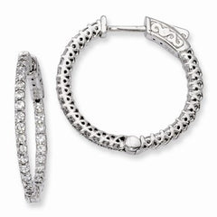 Sterling Silver Rhodium-plated CZ In and Out Hinged Hoop Earrings