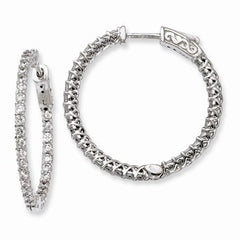 Sterling Silver Rhodium-plated CZ In and Out Hinged Hoop Earrings