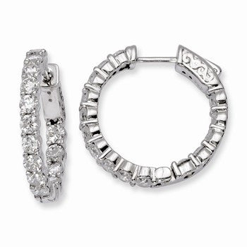 Sterling Silver Rhodium-plated CZ In and Out Hinged Hoop Earrings
