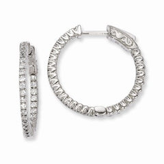 Sterling Silver Rhodium-plated In and Out CZ Hinged Hoop Earrings