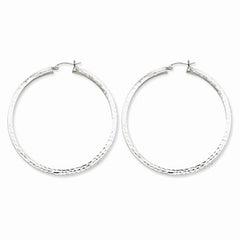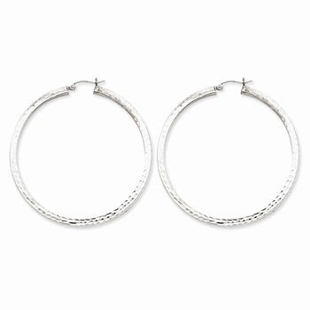 Sterling Silver Rhodium-plated Square Diamond-cut Hoop Earrings