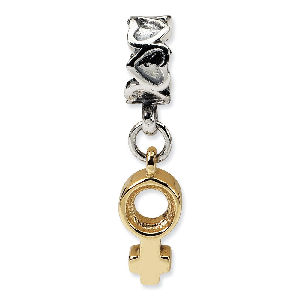 Sterling Silver & 14k Yellow Gold Female Sign Dangle Bead Charm hide-image