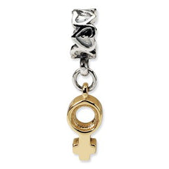 Female Sign Charm Dangle Bead in Sterling Silver & 14k Yellow Gold