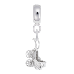 Baby Carriage Charm Dangle Bead In Sterling Silver