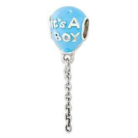 Enameled Its a Boy Balloon Charm Bead in Sterling Silver