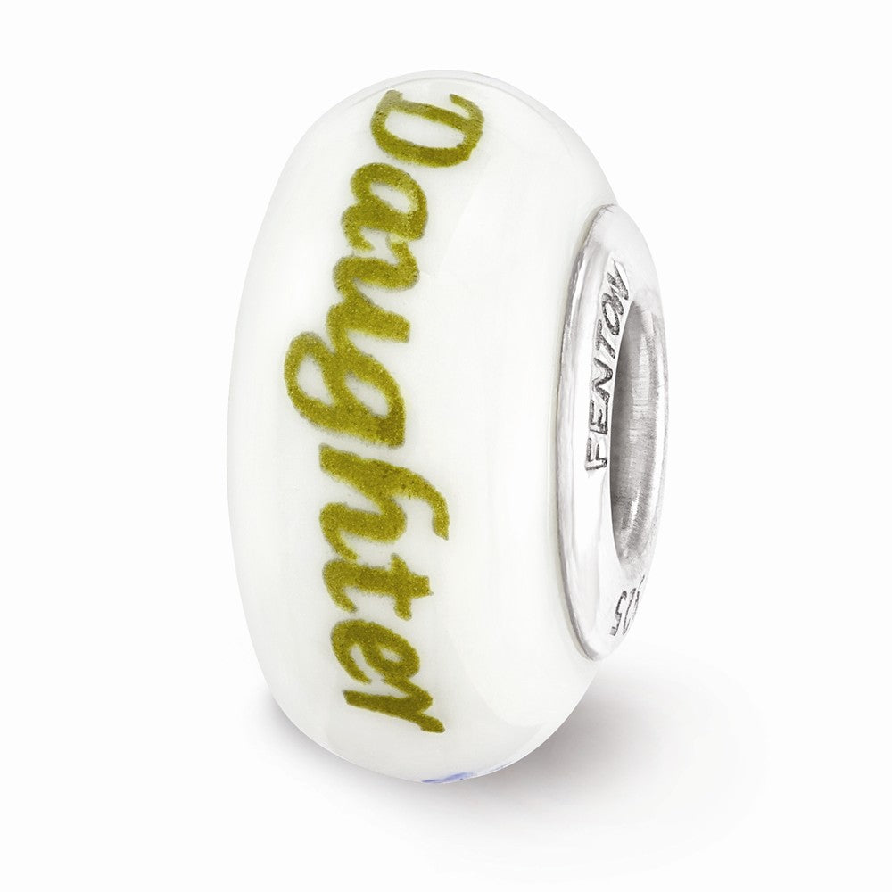 Hand Painted Daughter Floral Glass Charm Bead in Sterling Silver