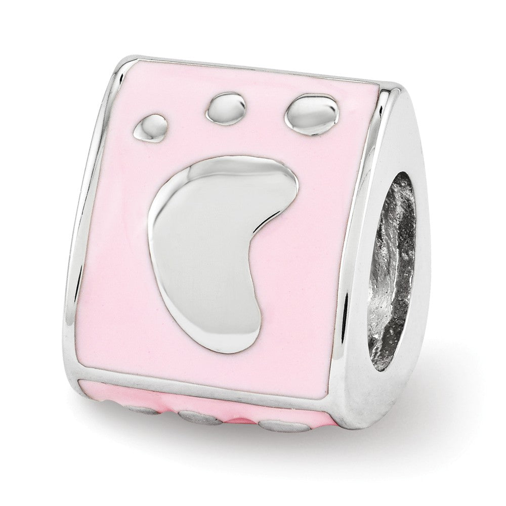 Pink Enamel 3-sided Baby Footprint Charm Bead in Sterling Silver