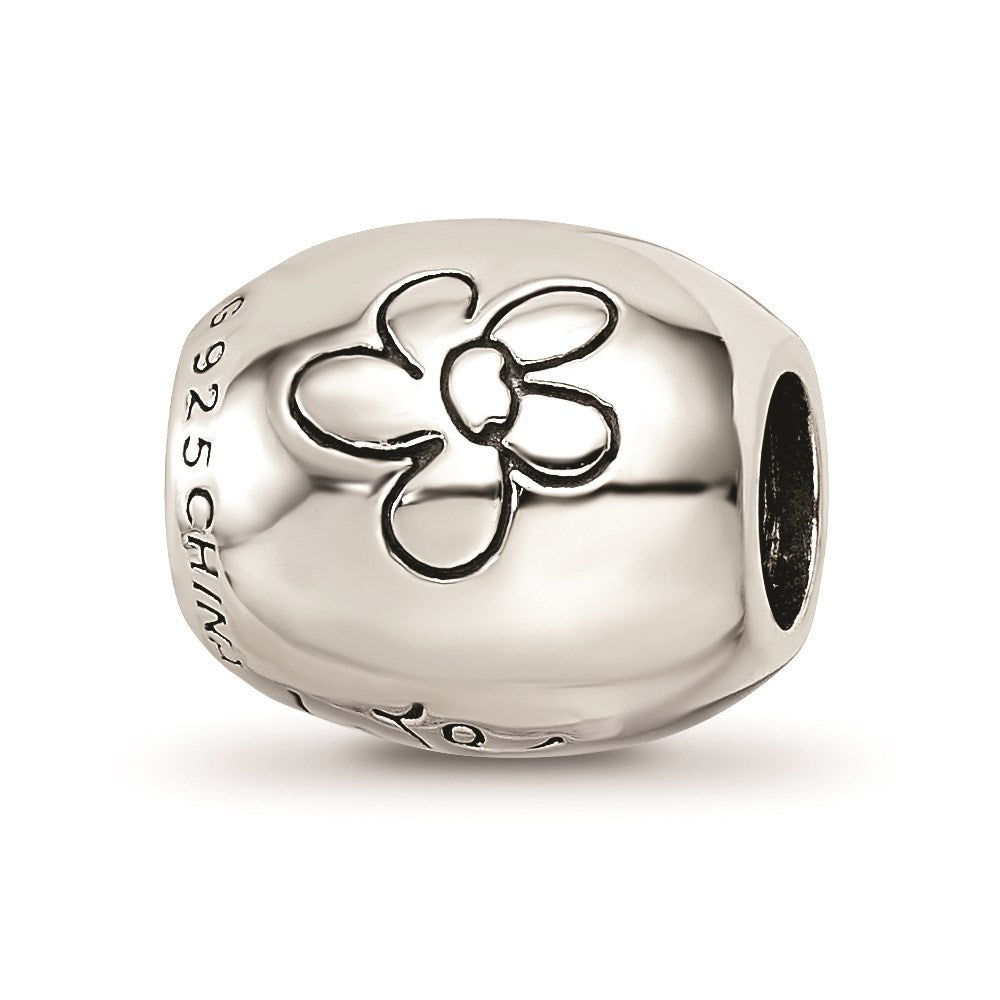 Antiqued We Are Family Flower Charm Bead in Sterling Silver