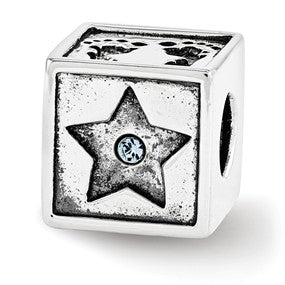Sterling Silver Swarovski Elements Baby Block Bead Charm hide-image