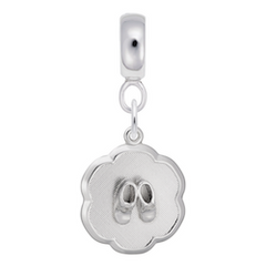 Protected by our Lifetime Warranty!This charm dangle bead is a great way to commemorate a recent baby! Add this engravable baby shoes disc charm dangle bead to a collection today.Rounded Charmdrop Hole Size Diameter: 4.6 MMCharm Height: 3/4 in. ~ (17.6 mm)Charm Width: 3/4 in. ~ (17.6 mm)Sterling Silver Charm Dangle Beads for Bracelets & NecklacesFits most Bead European Bracelets...