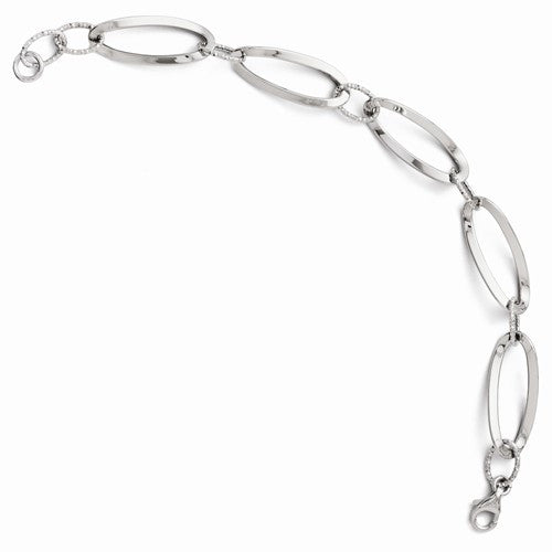 14K White Gold Poslished & Textured Fancy Link Bracelet