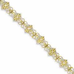 14K Yellow Gold Rhodium Diamond-Cut Fancy Bracelet