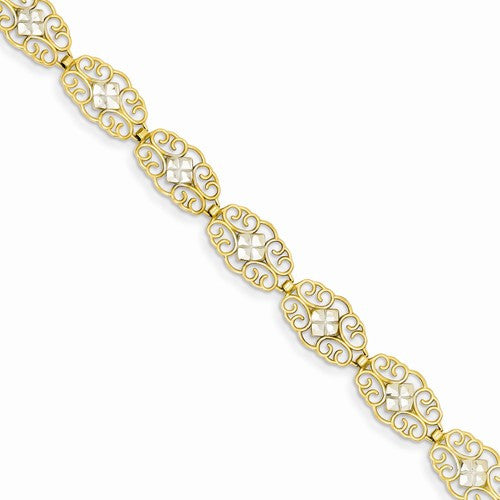 14K Yellow Gold with Rhodium Diamond-Cut Marquise Bracelet
