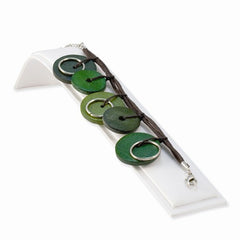 Silver-Tone Green Hamba Wood and Cotton Lace Bracelet
