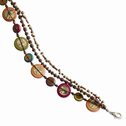 Silver-Tone Hamba Wood Coconut Acrylic Bead & Sequin Bracelet
