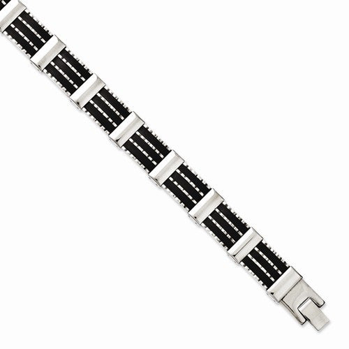 Stainless Steel Black Rubber & Polished Bracelet