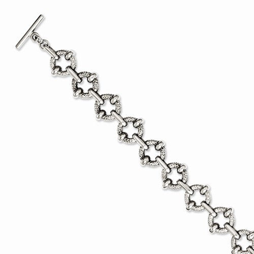 Stainless Steel Polished & Textured Circles Toggle Bracelet