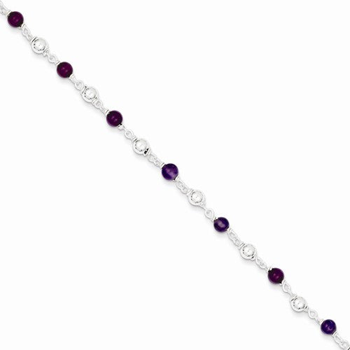 Sterling Silver Polished Amethyst Beaded Bracelet
