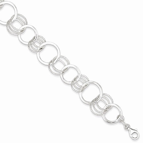 Sterling Silver Polished and Textured Circle Link Bracelet