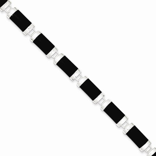 Sterling Silver Polished Open-Backed Onyx Bracelet