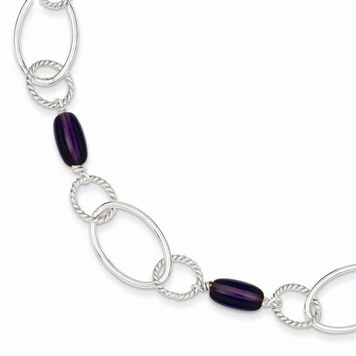 Sterling Silver Purple Crystal Fancy Link Bracelet