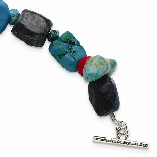Sterling Silver Red Coral Howlite Lapis & Turquoise Bracelet