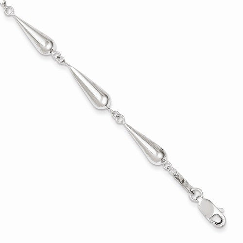 Sterling Silver Rhodium Plated Polished Tear Drop Bead Bracelet