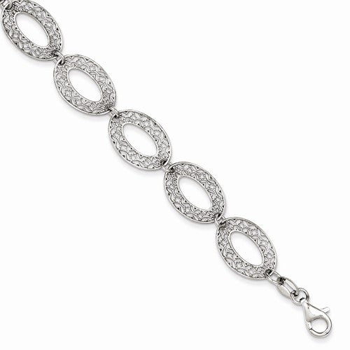 Sterling Silver Rhodium Polished Ovals Bracelet