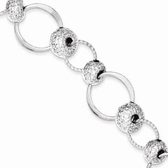 Sterling Silver Rhodium Polished & Texture Circles with Beads Bracelet