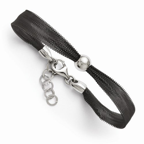 Sterling Silver Ruthenium-Plated Mesh Bracelet