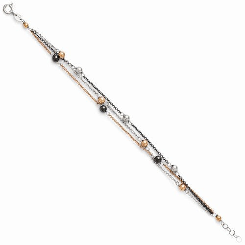 Sterling Silver Ruthenium & Rose Gold Plated Diamond-Cut Bracelet