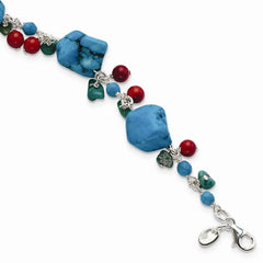 Protected by our 30-Day Risk Free Returns!Metal: Sterling SilverLength: 7.5 inchWidth: 11 mmStone: Coral, Turquoise, HowliteFree U.S. Shipping for orders over $99
