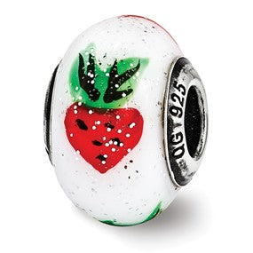 Strawberry Murrano Glass Charm Bead in Sterling Silver